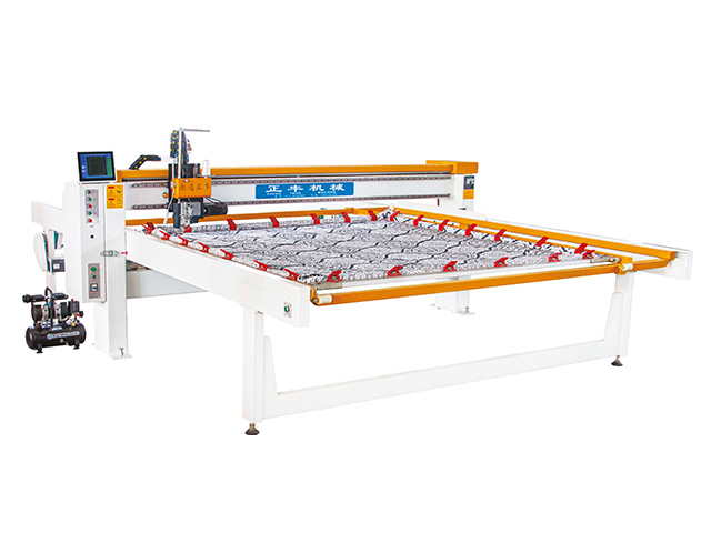 This machine is a new quilting machine with high speed, high precision and high automation. It adopts touch screen control and simple and humanized operation system. It can save manpower and material cost, collect large data in factory, and manage conveniently. It is suitable for large batch and high requirement processing.